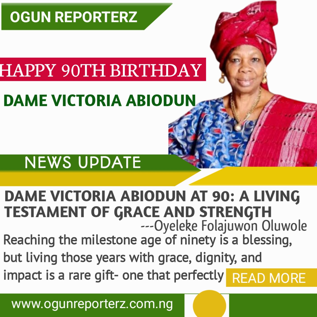 DAME VICTORIA ABIODUN AT 90: A Living Testament of Grace and Strength—Oyeleke Folajuwon Oluwole.